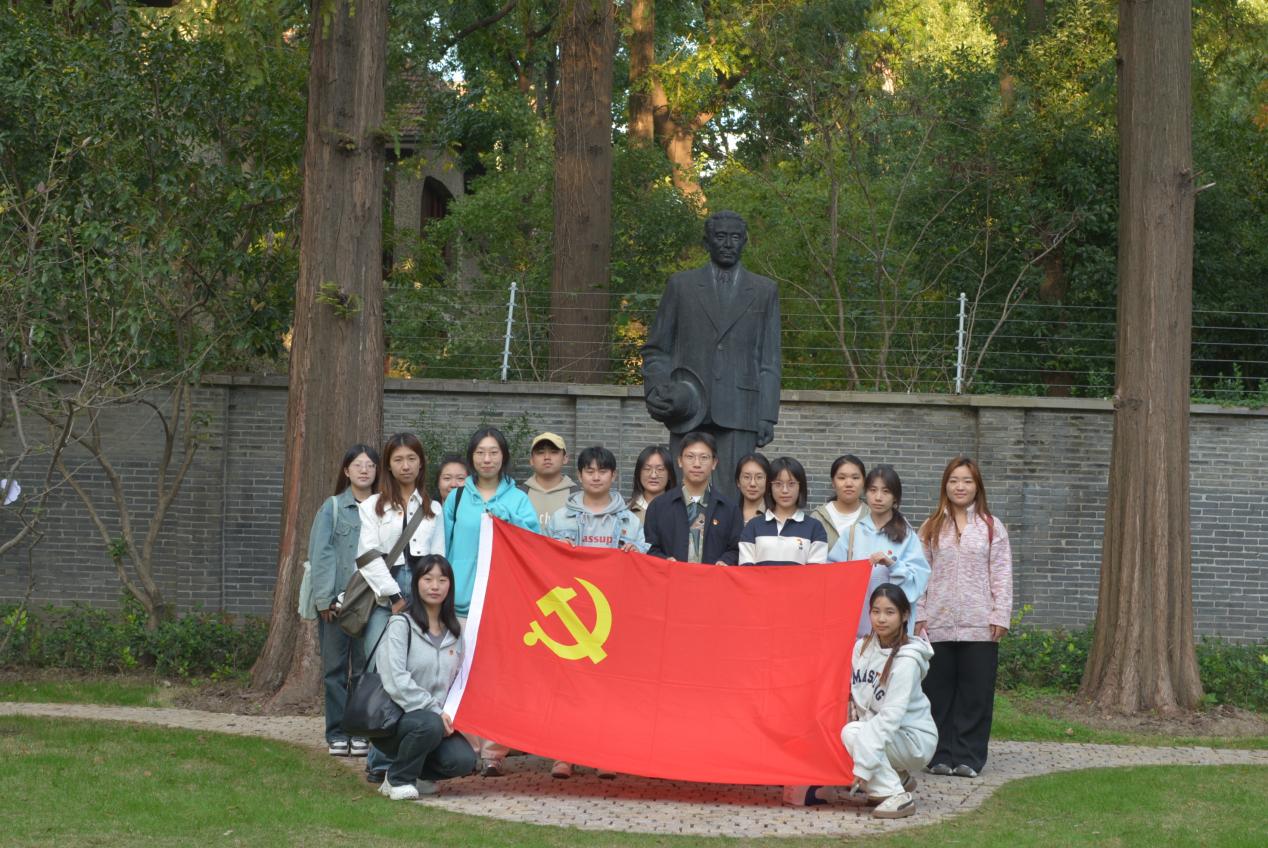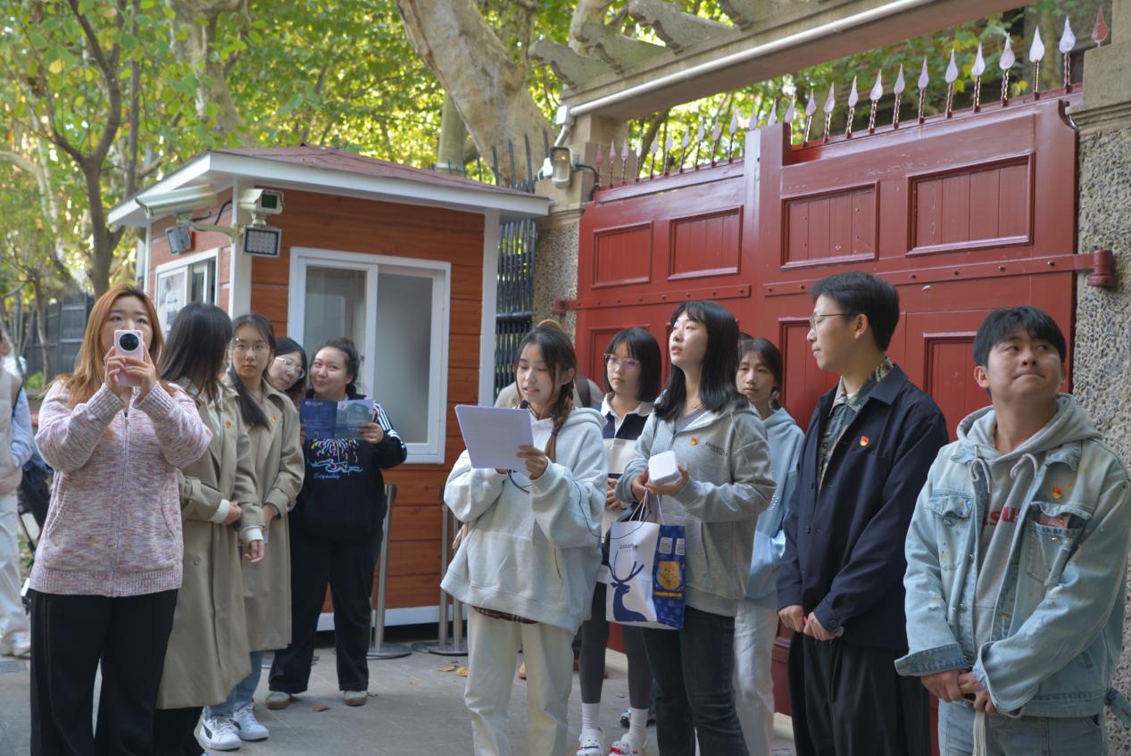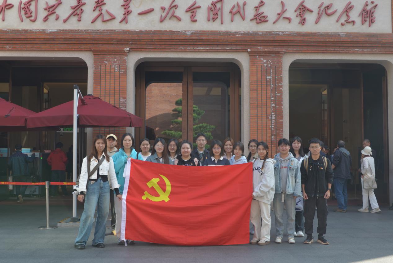 党支部全体成员满怀敬仰之情踏上寻根之旅。首站抵达的是中共一大会址,这座承载着中国共产党诞生历史意义的石库门建筑,见证了中国共产党从无到有、从小到大的光辉历程。在工作人员的引导下,大家有序进入会址内部。讲解员深情地讲述那段波澜壮阔的历史,同学们仿佛穿越时空,回到了那个风雨如晦、却又充满希望的年代。