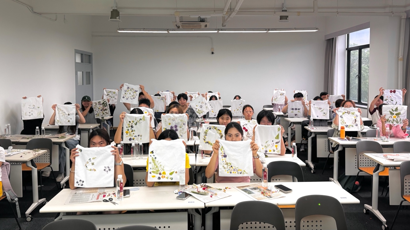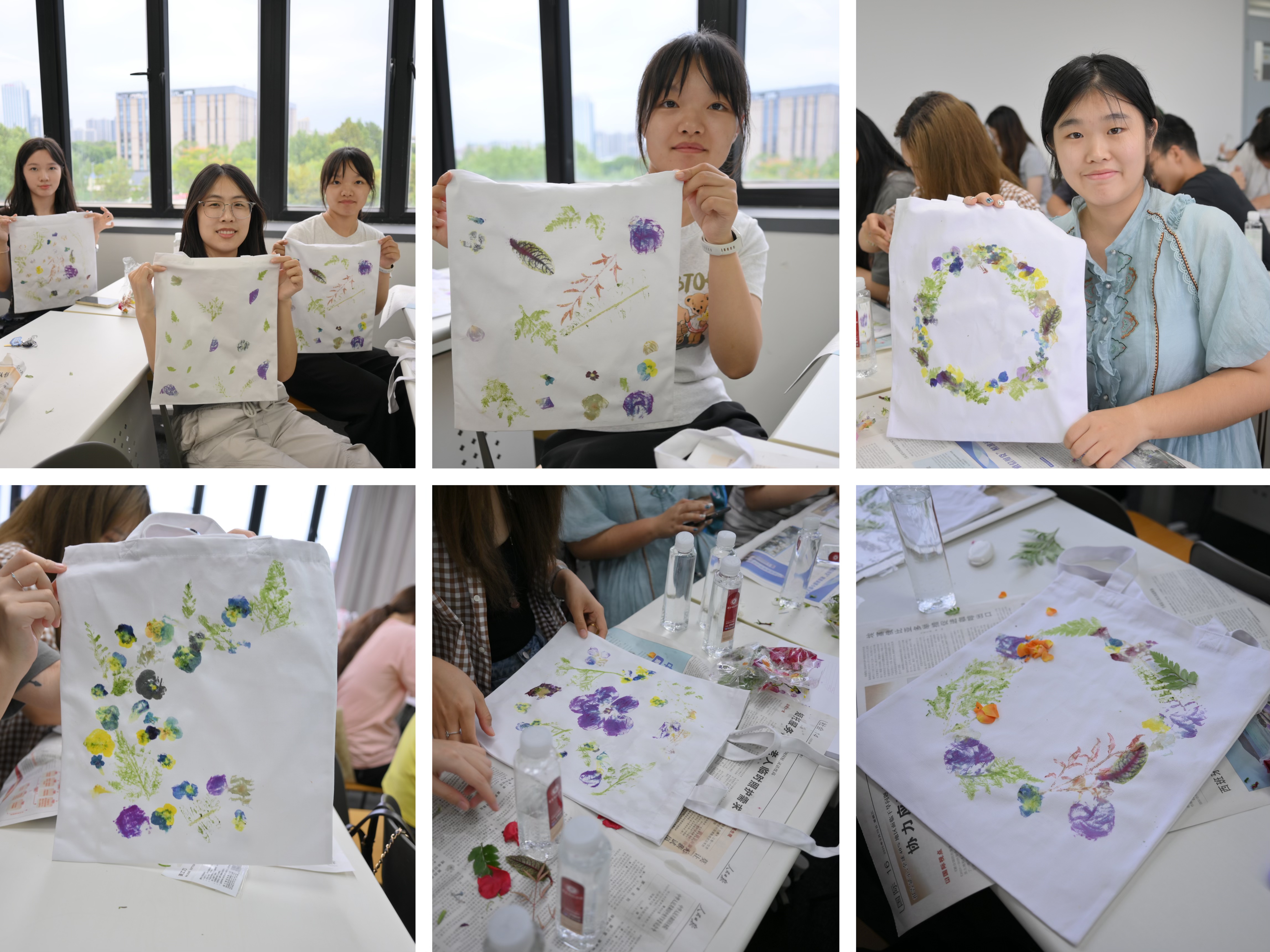9月18日下午16:15,研会为新生带来了一场独特的创意体验——帆布包植物拓印活动。同学们挑选新鲜的叶片与花材,在白色帆布包上通过敲击拓印的方式,将植物的纹理与色彩定格成独一无二的手作印记。敲打声与欢笑声交织,不仅让大家体验了亲手创作的乐趣,也在自然与手作的融合中,体会到“亲近自然、观察自然”的学科初心。完成的帆布包不仅是一份精美的纪念,更承载着新学期的第一份仪式感。