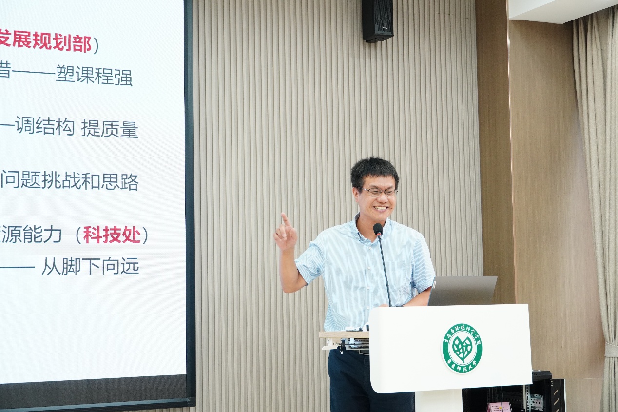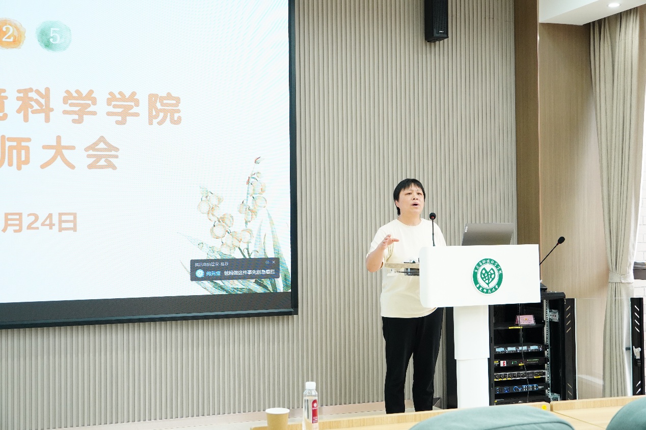 2025年9月24日,av影片 在闵行校区资源与环境楼148室召开全院教师大会。学院领导班子成员及全体教职工参加会议,会议由学院党委书记嵇渭萍主持,并特邀学校审计处冯彬老师出席,就科研经费规范管理与使用作专题报告。