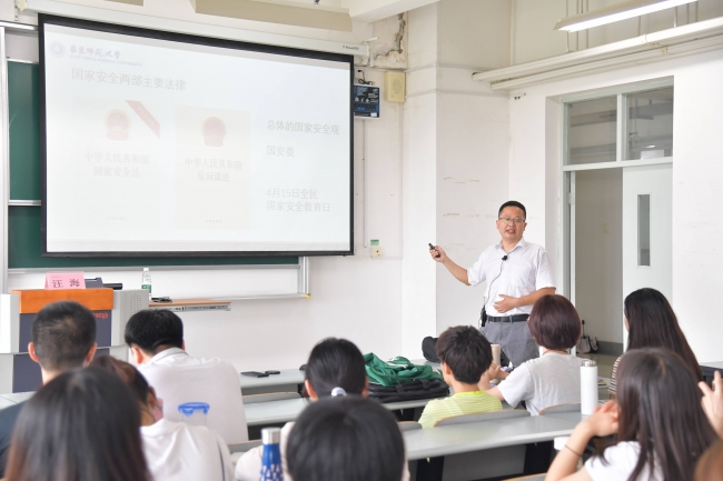 为增强2019级新生安全意识,提高自我保护能力,创建平安校园,2019年9月3日上午8:30,av影片 在闵行校区第二教学楼418室举办2019级新生安全教育讲座。本次讲座由我校保卫处汪海老师主讲,av影片 19级辅导员路葵老师主持。