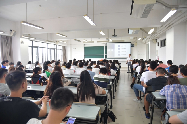 在讲座中汪海老师主要从国家安全、治安防范、消防安全、交通安全四个方面展开。在讲到国家安全问题时,汪老师讲解了《中华人民共和国国家安全法》和《中华人民共和国反间谍法》中赋予公民的权利和义务,同时也提醒同学们在参加国际学术会议或其他国际交流项目时应当注意的关于国家安全的事项。在治安防范方面,汪老师重点给同学们介绍了当今最常见的电信诈骗案例,比如微信诈骗、QQ诈骗、手机短信诈骗、冒充身份诈骗等,这些案例很贴近同学们的生活,汪老师也教会同学们如何识别电信诈骗以及记住“三不一要”的防电信诈骗的常识。汪老师还提醒同学,在宿舍、教室、户外要时刻看管好自己的财务,避免财务被盗。消防安全在同学们的学习和生活中尤为重要,汪老师教同学们要记住“一懂三会”,遇到火灾时首先在保证自身安全的前提下再开展其他扑救工作,另外还提醒同学们不要在宿舍使用热水壶等大功率用电器,做实验室时不要串联使用插线板且不要在一个插线板上插入多个用电器等。在交通安全上,汪老师通过几个真实、触目惊心的视频告诫大家,在校园里骑车要减速慢行,外出要遵守交通规则,切不可贪图速度而导致交通事故的发生。